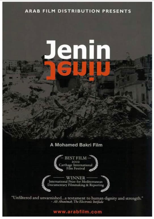 イスラエルで上映禁止になった「ジェニンの戦い」を題材にしたドキュメンタリー。2002年のイスラエルによる軍事作戦中、ジェニン難民キャンプへのジャーナリストや人権団体の立ち入りは禁止され、パレスチナ側のナラティブは届かない。パレスチナ系イスラエル人、モハンマド・バクリ監督がカメラを手にジェニンで拾う、パレスチナ人の生の声。